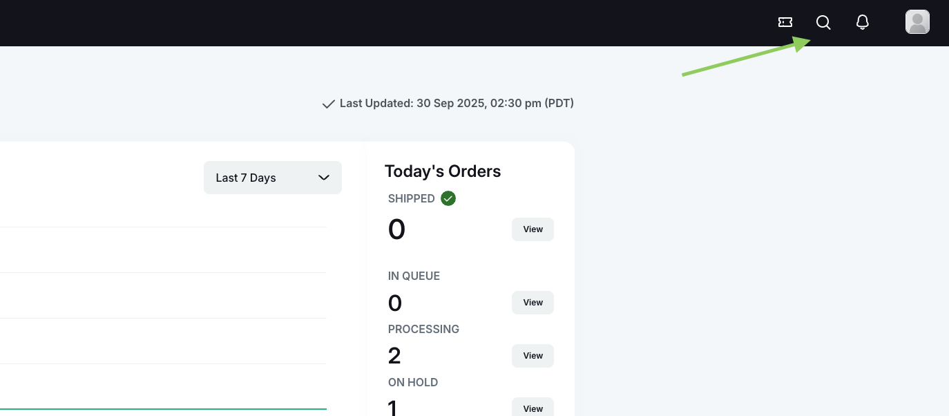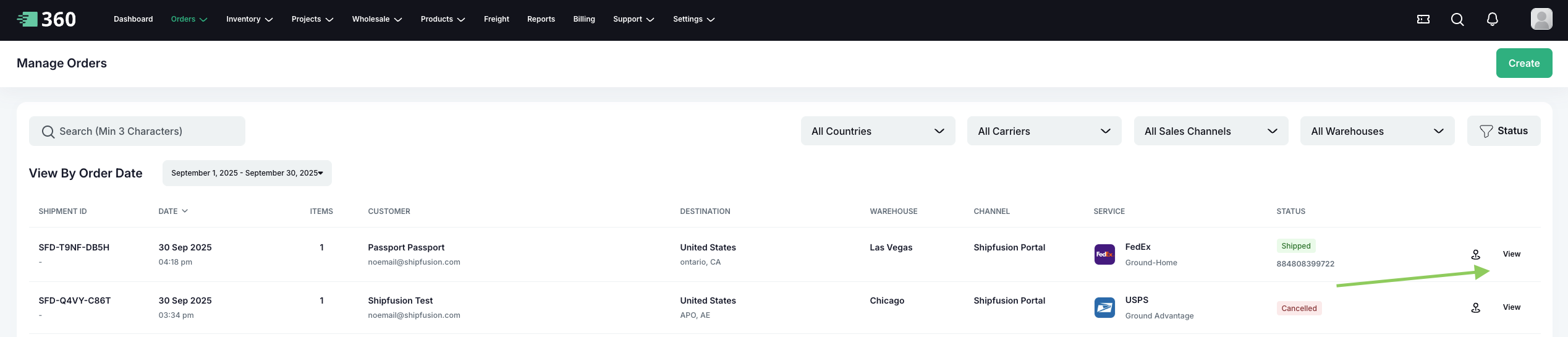 1. Go to orders > Manage orders OR find the order using the global search bar (on the top right of your Portal)