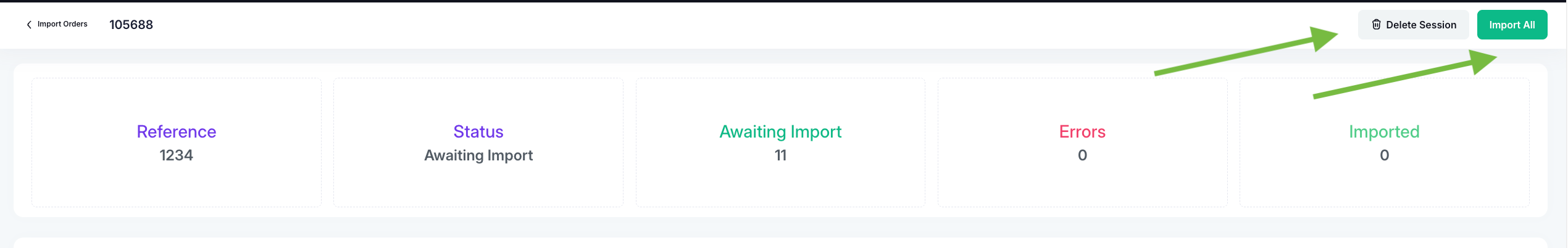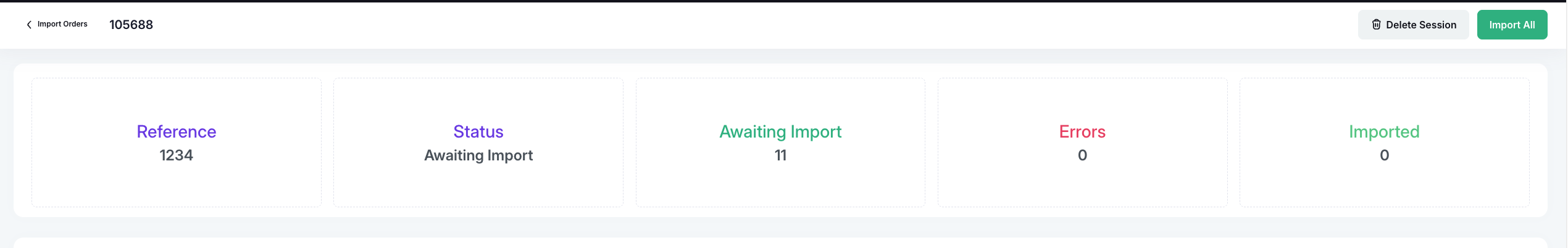 Once you have selected the Import Orders button, you will see a bar appear, which will put each order into a certain category - Awaiting Import, Errors, or Imported: