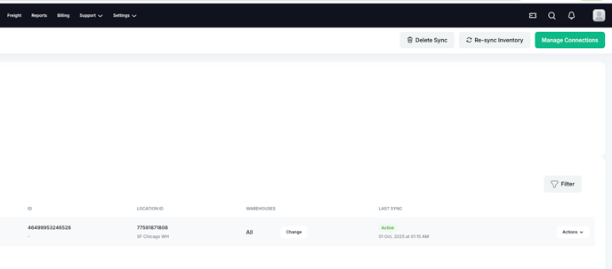 Once you have created all your connections and would like inventory to be synced up, you can select the Resync Inventory button.