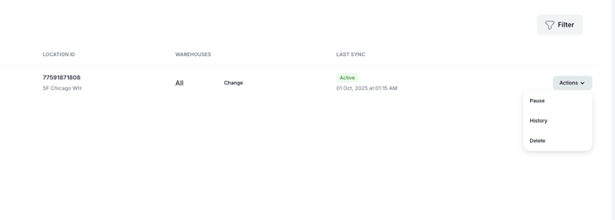 - Resume - if a SKU was previously paused, this allows for the system to enable the sync connection again