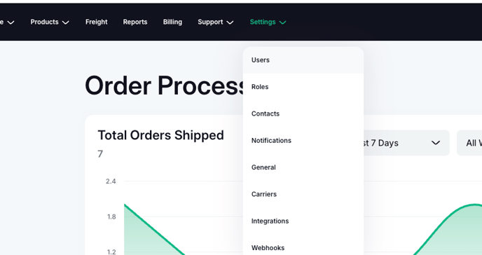 If you are an Administrator, you can manage the users that have been added to the Shipfusion customer portal. To access this area of the portal, select Settings > Users.