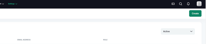 You can create a new user in the system by selecting the Create button in the top right-hand corner: