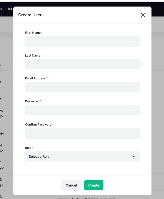 Here you can enter the user’s first and last name, email address, create a password, and set their role. This information can be changed at any time in the future if needed.