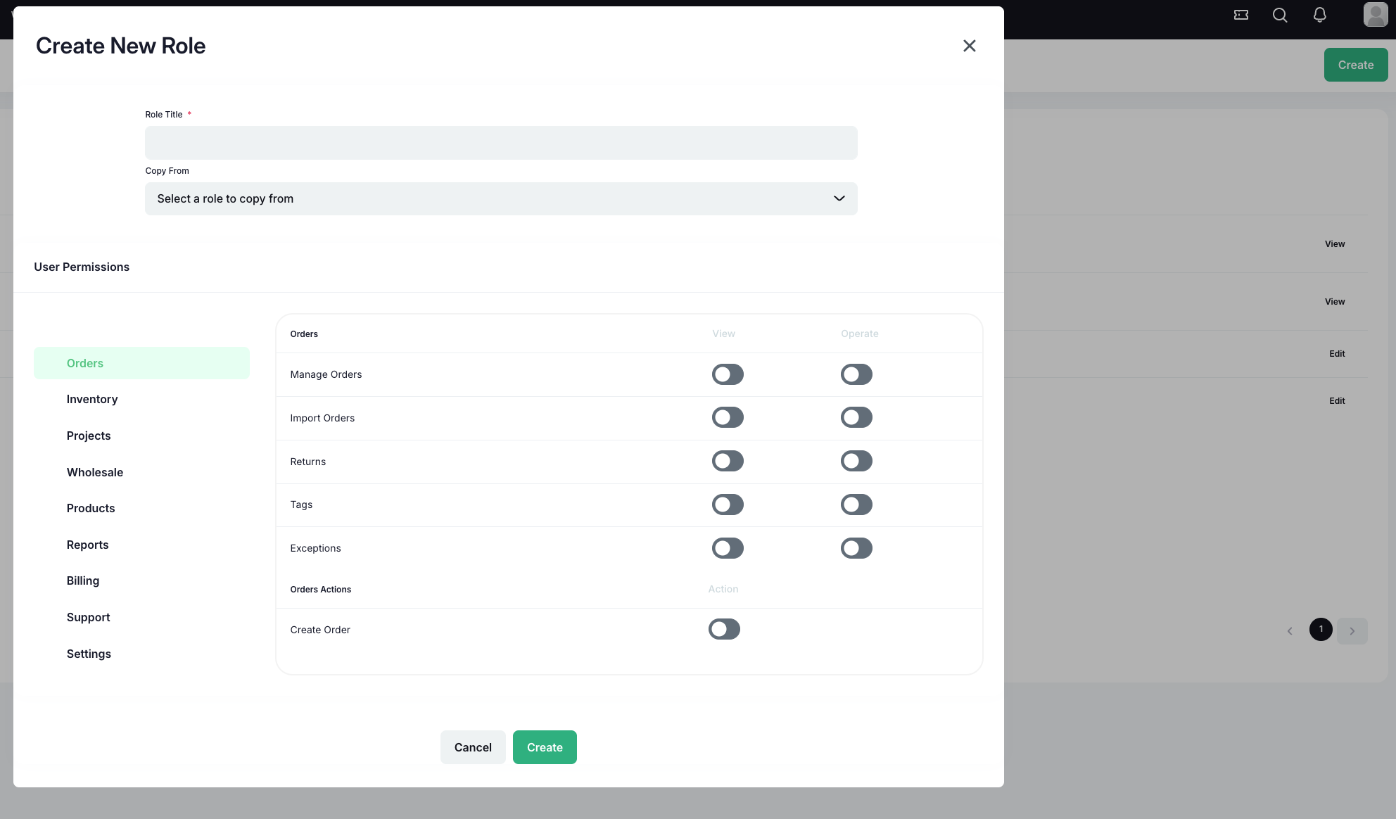 To create a new role, you can select the Create button in the top right corner. From the corresponding pop-up, you will want to name your new role.